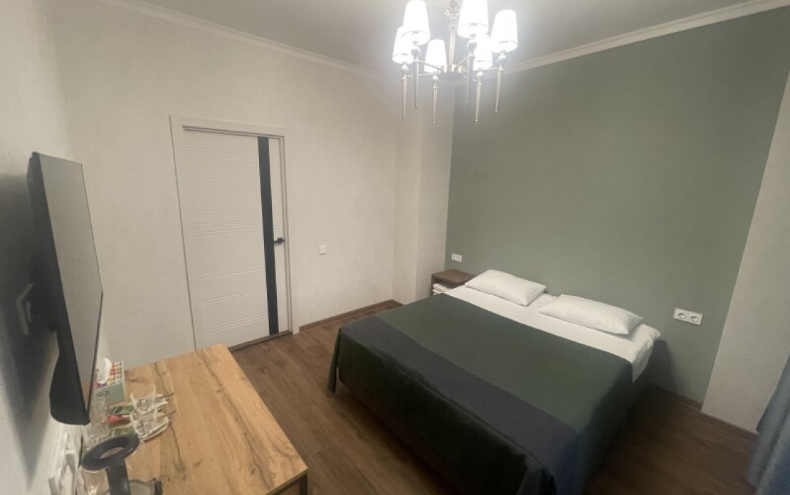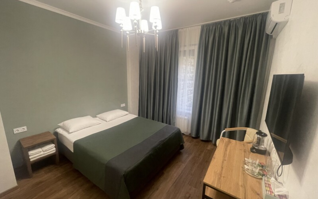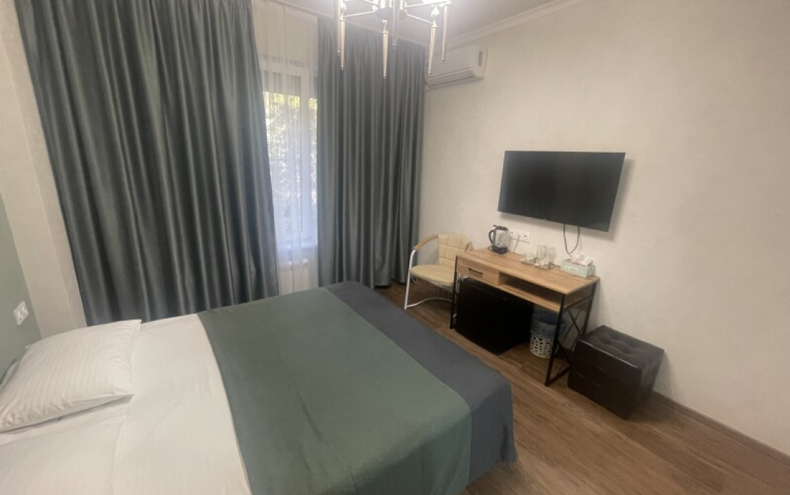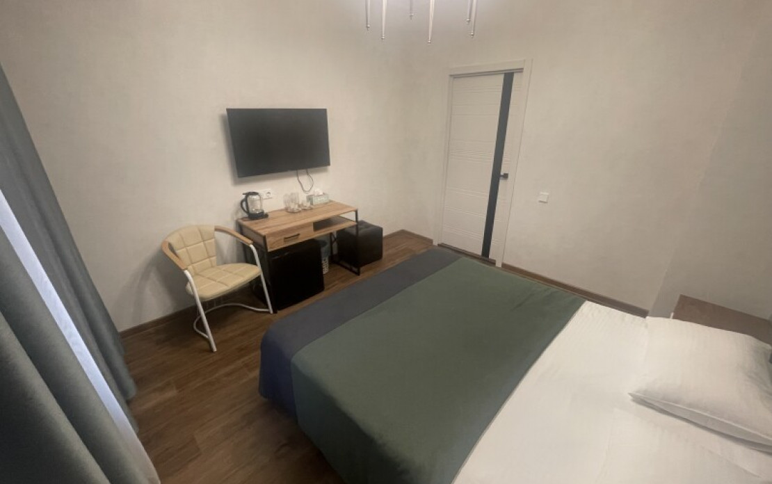 Номер с одной двуаспальной кроватью. В номере есть все необходимое для вашего удобства: светонепроницаемые шторы, чай, кофе, чайник, отдельный санузел, душевая кабина, средства личной гигиены, фен, две пар одноразовых тапочек, халаты, ЖК-телевизор и бесплатный Wi-Fi.
