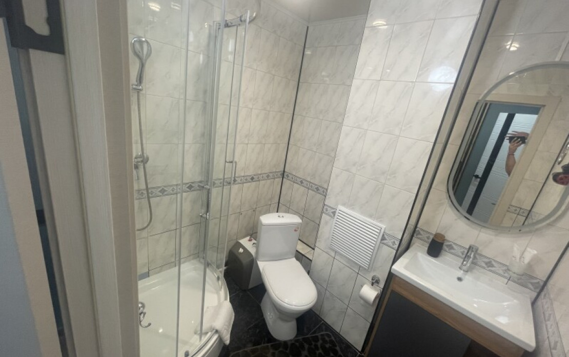 Номер с одной двуспальной кроватью и одной односпальной кроватями. В номере есть все необходимое для вашего удобства: светонепроницаемые шторы, чай, кофе, чайник, отдельный санузел, душевая кабина, средства личной гигиены, фен, три пары одноразовых тапочек, халаты, ЖК-телевизор и бесплатный Wi-Fi.